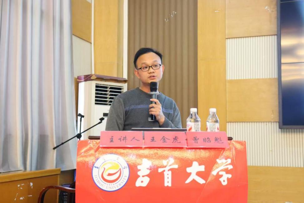 本网讯(通讯员 谢颖) 12月11日下午,太阳集团122cc于大田湾校区2609多功能报告厅举办“药学讲坛”学术报告第三十期“生物医药领域的前沿技术”主题讲座。本次讲座由王金虎博士和曾昭魁博士主讲,太阳集团122cc150余名师生参与讲座。叶凡博士主持讲座。