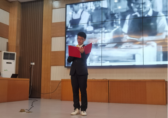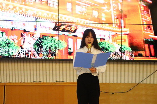 图为 太阳集团122cc团委负责人石静咏诗赛前致辞