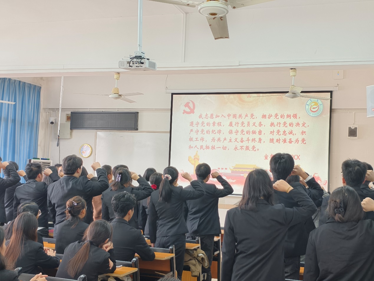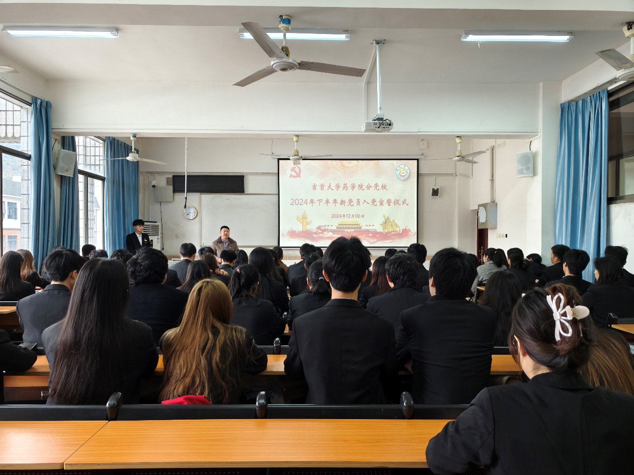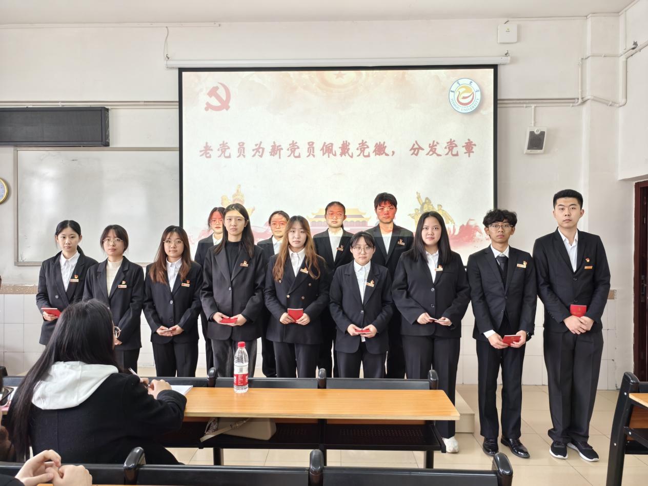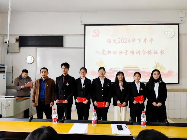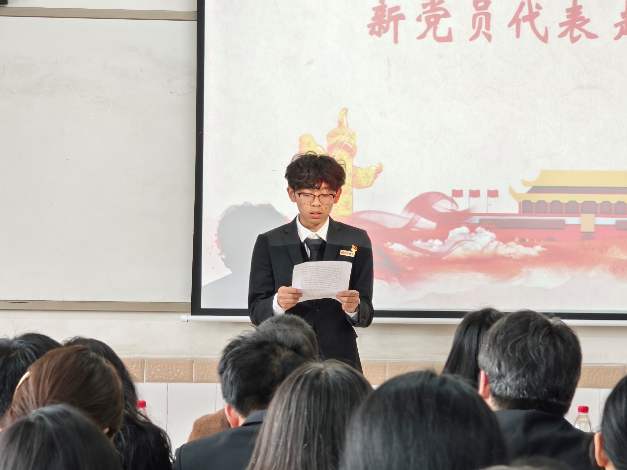 雷嘉豪同志带领新老党员宣读入党誓词,新党员代表赵京同志发言,并由领导老师颁发2024年下半年入党积极分子培训合格证书。