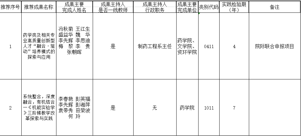 推荐成果情况: