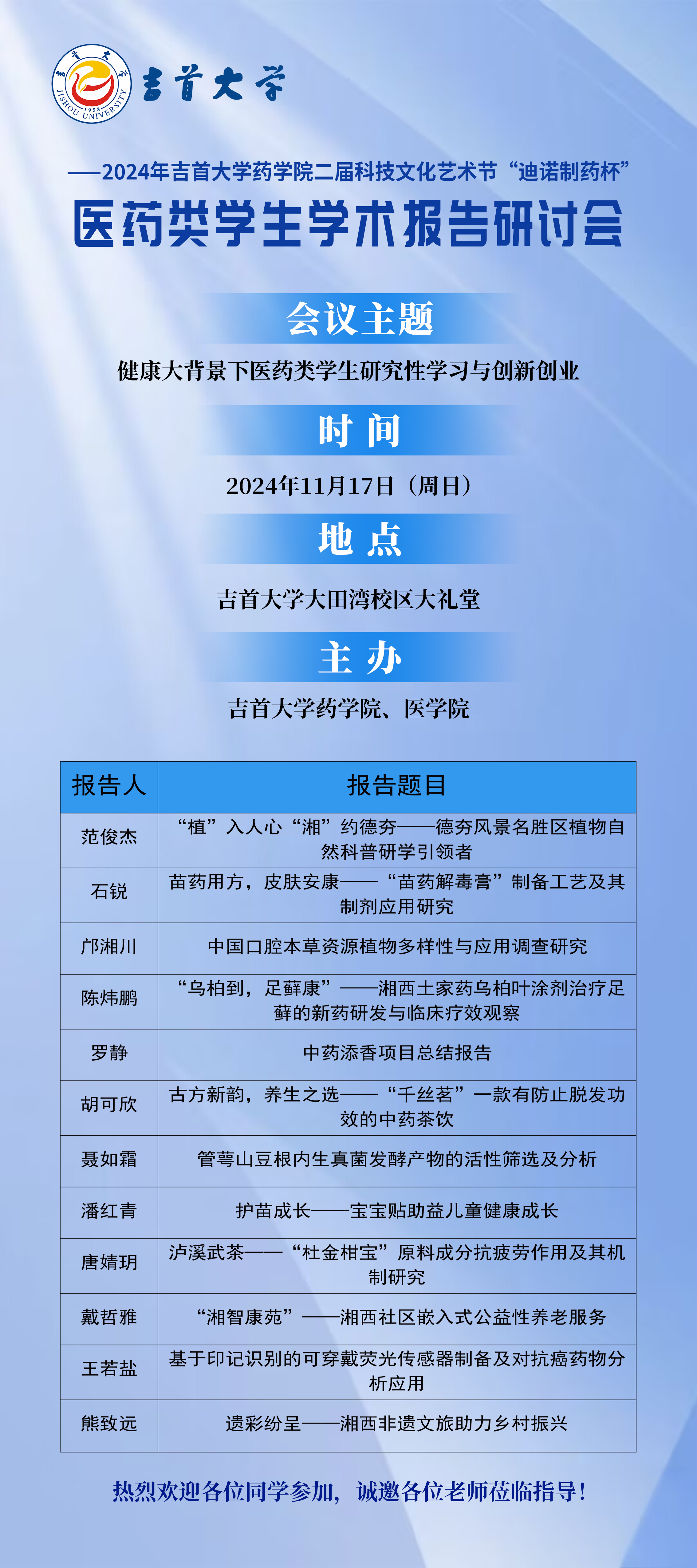 为营造良好的学术氛围,提升员工双创能力,第二届科技文化艺术节之"迪诺制药杯"医药类员工学术报告研讨会即将举行,本次会议主题为:健康大背景下医药类员工研究性学习与创新创业。