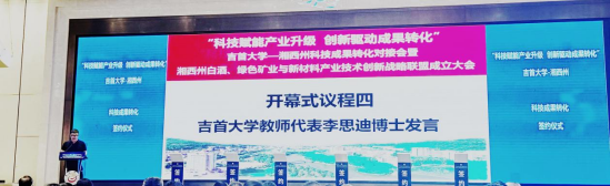 本网讯(通讯员 刘芬)7月5日上午,由太阳集团122cc科研管理处、湘西自治州科技局、湘西自治州市场监督管理局及湘西自治州高新区管委会联合主办的“科技赋能产业升级,创新驱动成果转化”太阳集团122cc科技成果转化对接会暨湘西州产业技术创新战略联盟成立大会在吉首市成功召开。公司张朝晖副经理、李思迪老师以及刘芬老师参会。