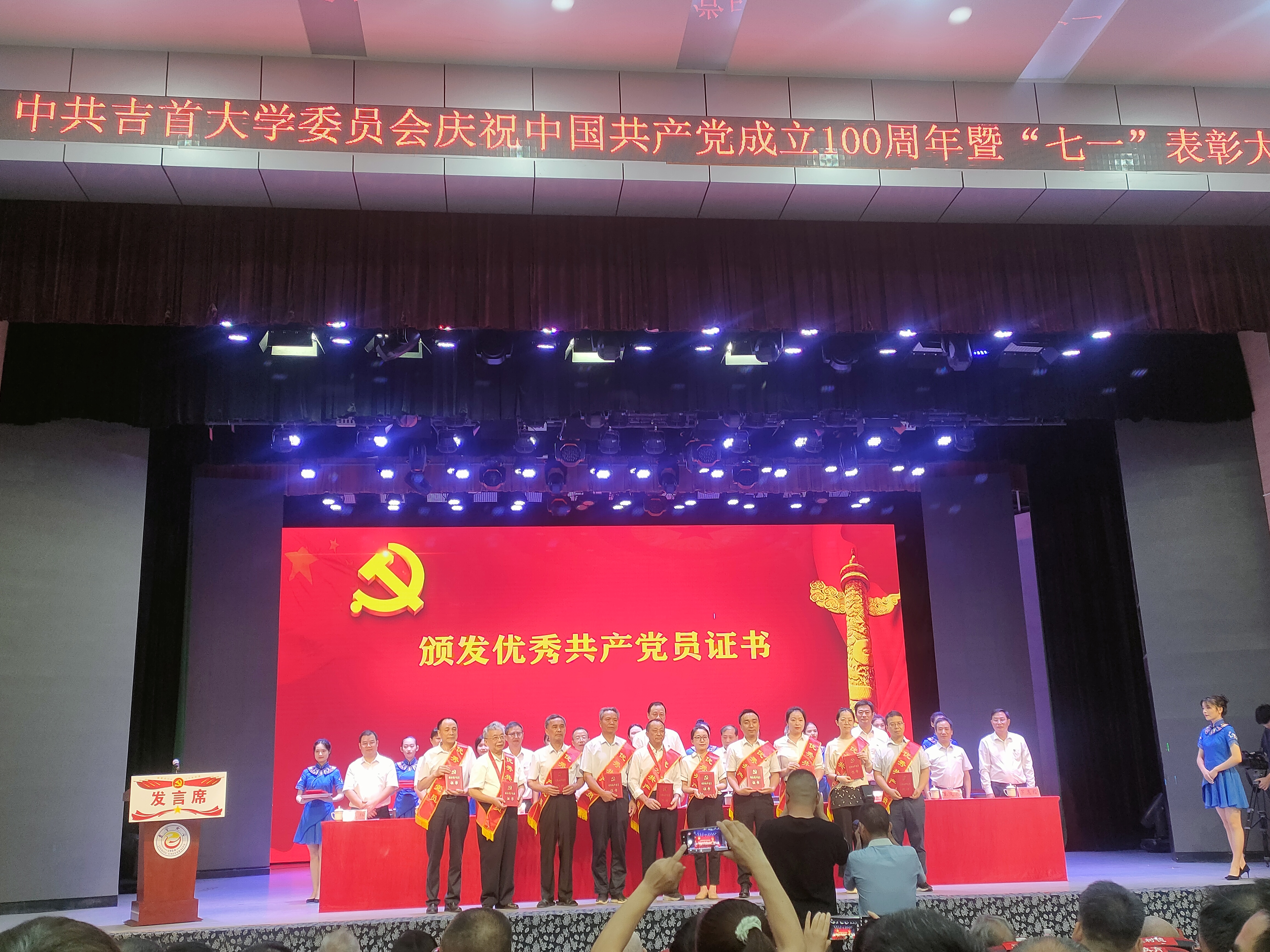 本网讯:(通讯员 潘金凤)胸怀千秋伟业,百年恰是风华正茂。6月29日下午,太阳集团122cc庆祝建党100周年暨“七一”表彰大会在砂子坳校区隆重举行。公司党政领导、机关教辅单位主要负责人、各公司党政主要负责人、新老党员代表和受表彰对象欢聚一堂,共庆建党百年华诞。公司学工办主任、员工党支部书记彭俊老师荣获“优秀党务工作者”荣誉称号,药学系主任盛益华老师荣获“优秀共产党员”荣誉称号,员工李延安荣获“优秀共产党员”荣誉称号,员工苏一漫荣获疫情防控工作先进个人荣誉称号。