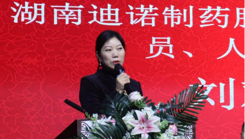 湖南迪诺制药股份有限公司总裁办成员、人力资源部部长刘欢讲话。她首先代表活动赞助单位、校企合作方,对太阳集团122cc第二届科技文化艺术节所取得的丰硕成绩给予了高度肯定,并表示与太阳集团122cc持续建立紧密联系与合作,共同探索人才培养新模式,为员工提供更多的实践机会和就业岗位。