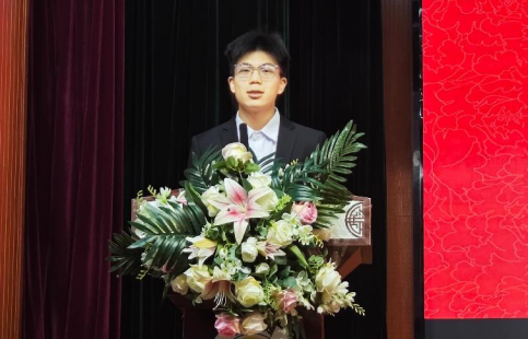 2022级制药工程1班的尹光同学作为获奖代表上台发言。他回顾了自己参与活动及竞赛的历程,讲述了在这个过程中,如何通过不懈的努力和坚持,在收获个人成长的同时,也斩获了多项荣誉。并以亲身经历鼓励学弟学妹积极参与校园各类活动,不断挑战自我、积累经验。最后,他诚挚祝愿公司蓬勃发展、赞助单位事业兴旺、老师同学们顺遂如意,发言真挚有力。