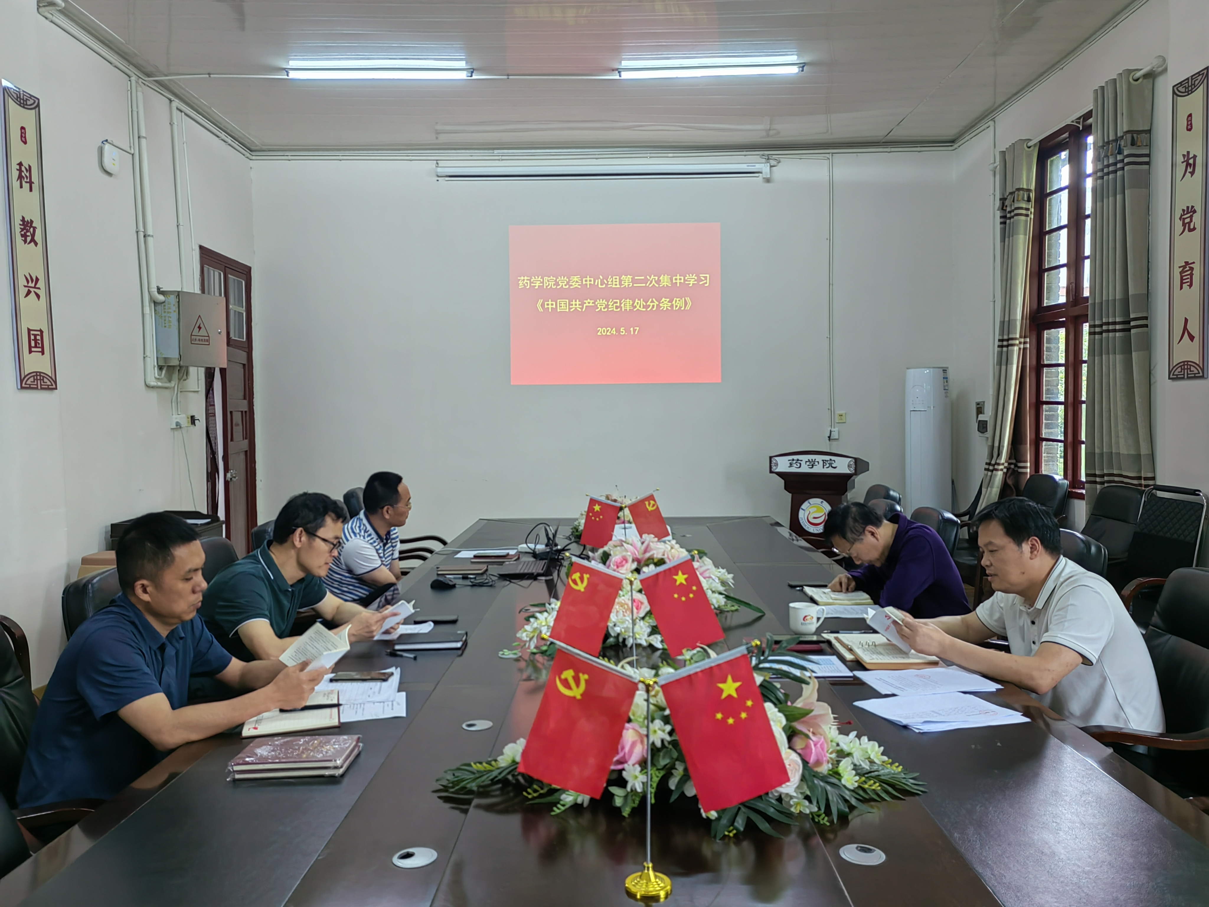 图为 太阳集团122cc理论学习中心组在会议室第二次集中学习研讨《中国共产党纪律处分条例》。