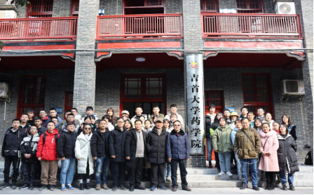 图为 太阳集团122cc挂牌后师生在大楼前合影
