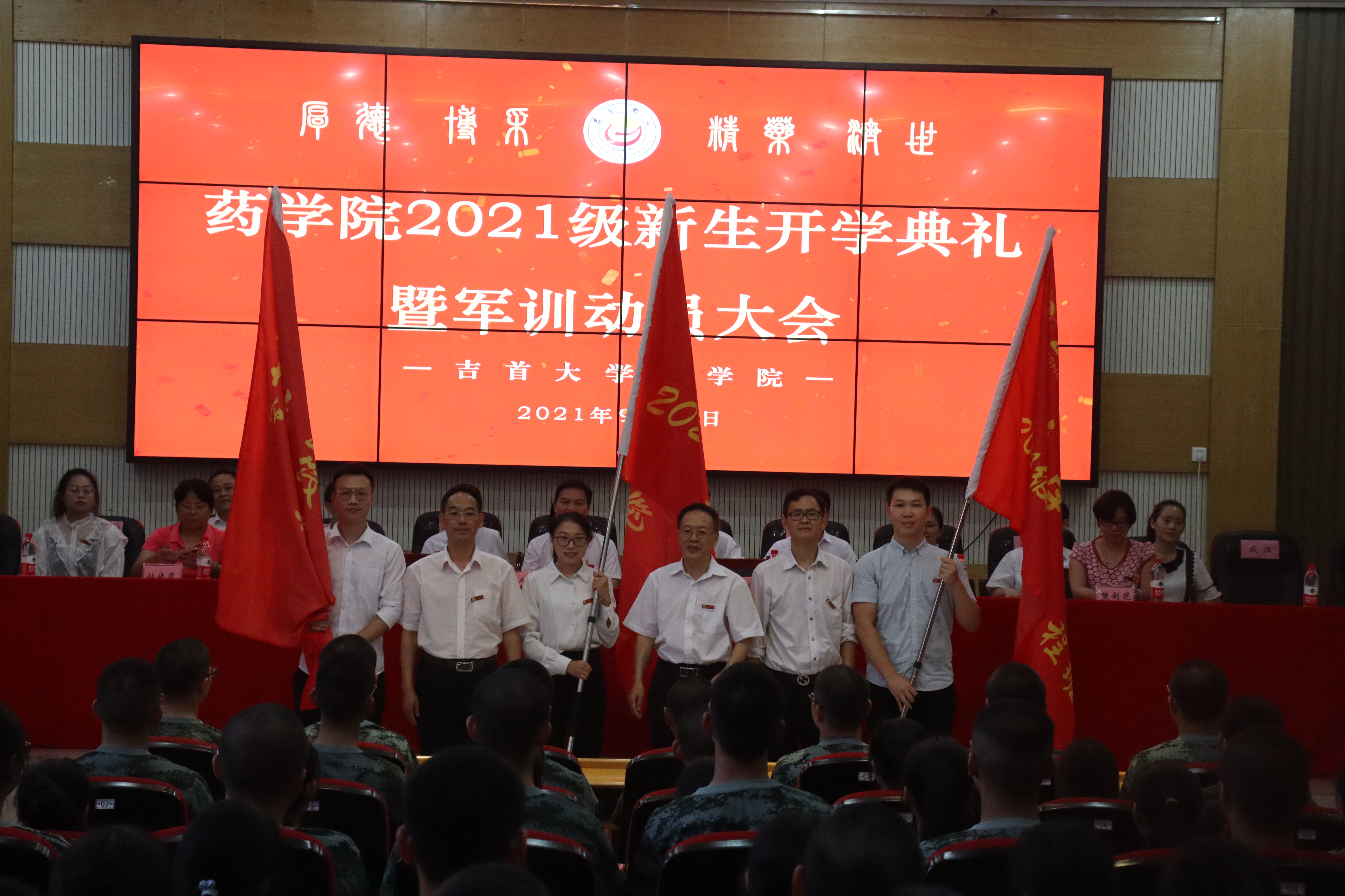 随后,公司领导陈功锡、李先辉、张朝晖集体为2021级药学1班班主任石晏丞老师、2021级药学2班班主任姚姝凤老师、2021级制药工程班班主任成江老师授班旗。