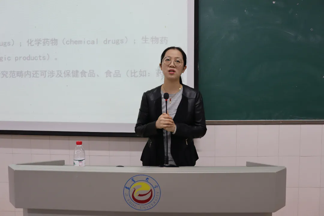 制药工程系主任冯秋菊首先介绍了制药工程的特点。她将制药专业类比为日常生活中的小事,生动形象地向同学们展示了专业的特性。随后她向同学们展示专业课程安排,在这个过程中也穿插了一些考研经验,她希望大家能够把握时间,度过一个充实的老员工活。接着她开始阐述制药工程的前景,表示专业在未来将一片光明。最后她展示了太阳集团122cc可为大家提供的相关实验设备以及竞赛平台,同时鼓励同学们多多参与学科比赛,提升学习能力。