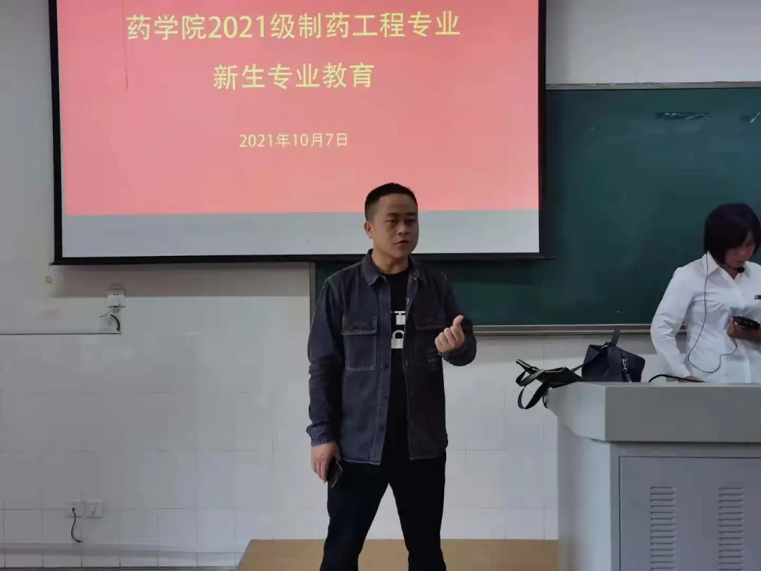 图为 药学系主任盛益华为同学们进行专业教育
