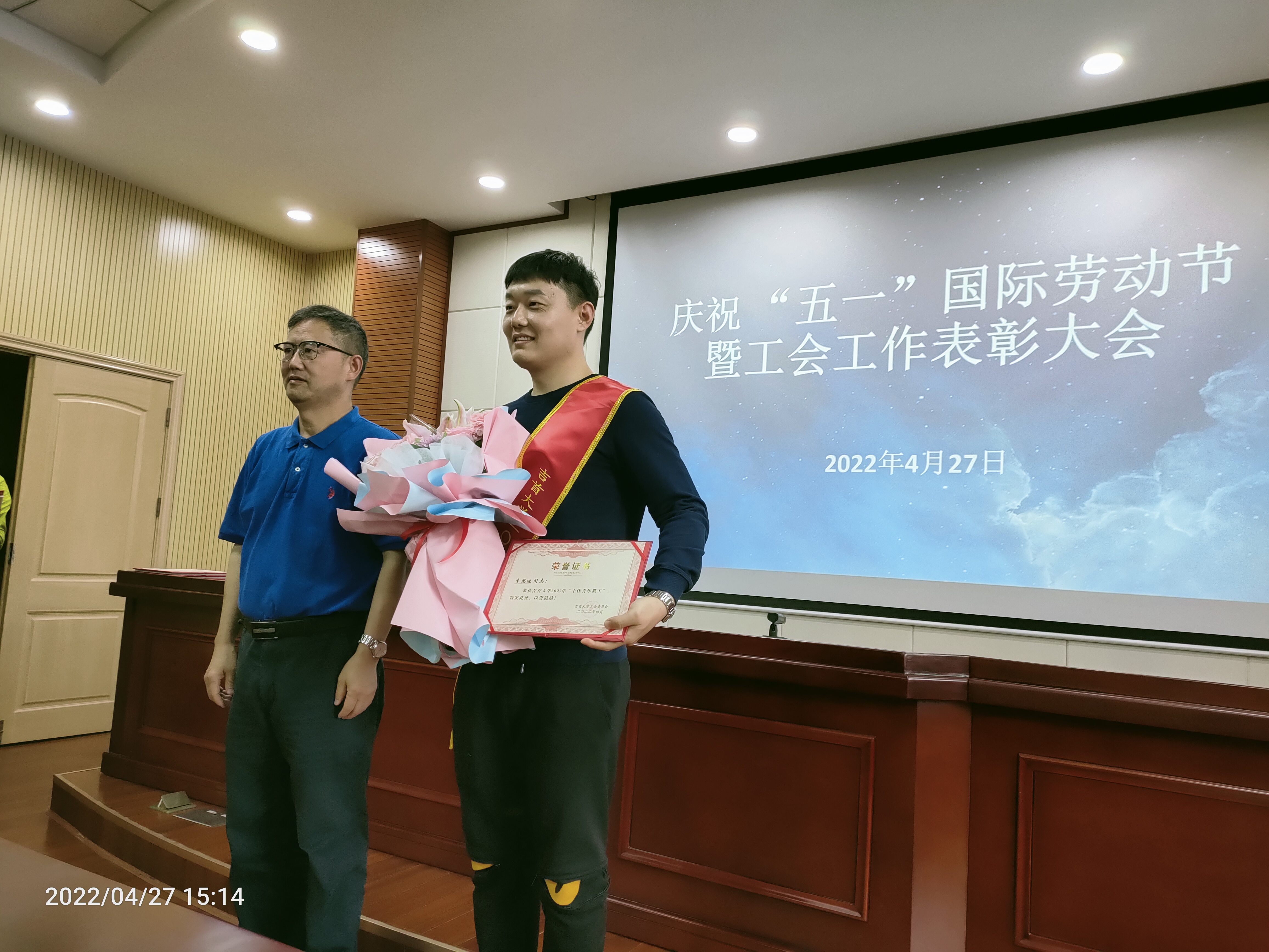 在此次表彰大会上,公司青年教师李思迪博士、副教授荣获太阳集团122cc“十佳青年教工”受到公司表彰,公司党委委员、副董事长、工会主席龙先琼为他颁奖。
