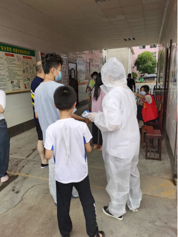 作为疫情防控工作人员,李湘婷每天不到8点就到达卫生院,在当地卫生院帮助医护人员测量体温、检查健康码、帮助老年人了解抗疫方面的知识、维持疫苗接种的秩序、向未成年人普及疫苗接种前后的注意事项。
