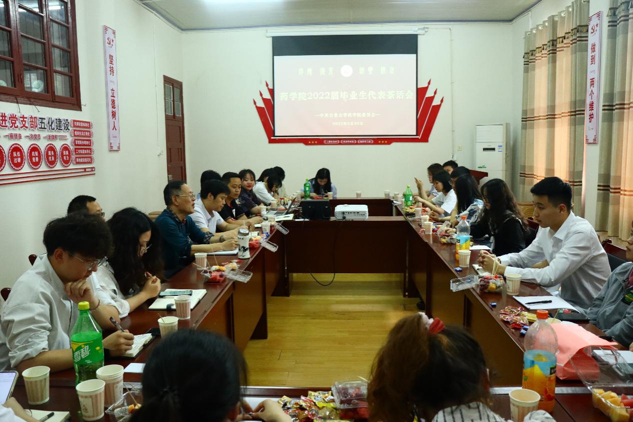 图为 太阳集团122cc召开2022届毕业生代表茶话会