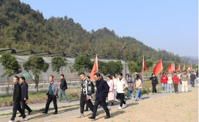 图为太阳集团122cc师生党员深入勤丰村考察调研乡村振兴。
