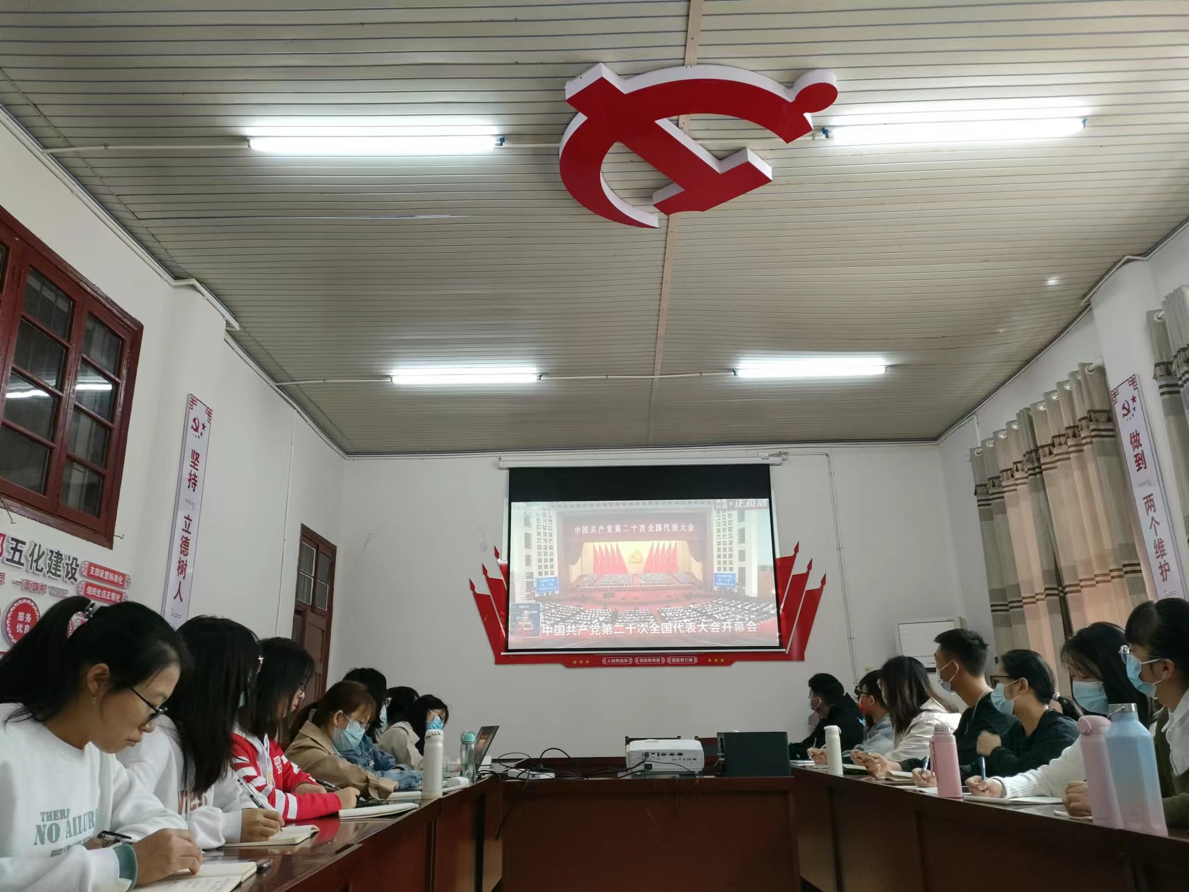 图为公司师生在党员活动室集中收看党的二十大开幕会。