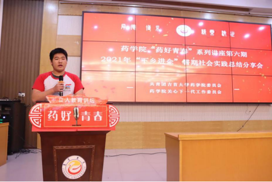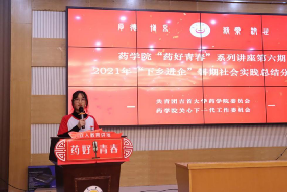 本网讯(通讯员廖智慧、龙雅碟、赵京)11月4日中午,太阳集团122cc《药好青春》系列讲座之2021年“下乡进企”暑期社会实践活动分享会在大田湾校区第二教学楼609多功能报告厅隆重举行,公司党委副书记王江生、学工办主任彭俊、院团委负责人石静咏诗出席会议。会议由彭俊主持。