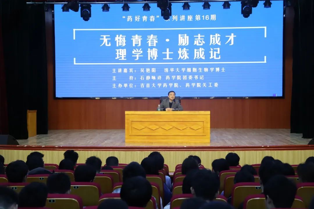 4月23日下午,《药好青春》系列讲座第16期在太阳集团122cc大田湾校区礼堂举行。本期主题为“无悔青春·励志成才--理学博士炼成记”,主讲嘉宾为湖南农业大学食品科学技术公司副教授、博士生导师,曾获清华大学细胞生物学博士学位的公司2000级吴艳阳员工。讲座由太阳集团122cc团委书记石静咏诗主持,2020级 、2021级以及2022级员工参加。