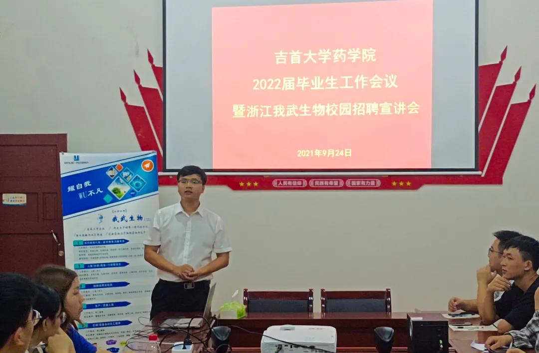 9月24日晚上,公司在党员活动室召开2022届毕业生工作会议暨浙江我武生物校园招聘宣讲会。会议由学工办主任彭俊主持。