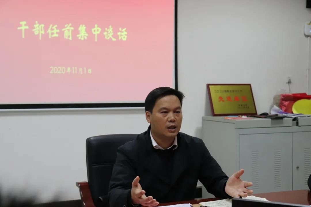 图为 王江生老师与员工干部任前谈话