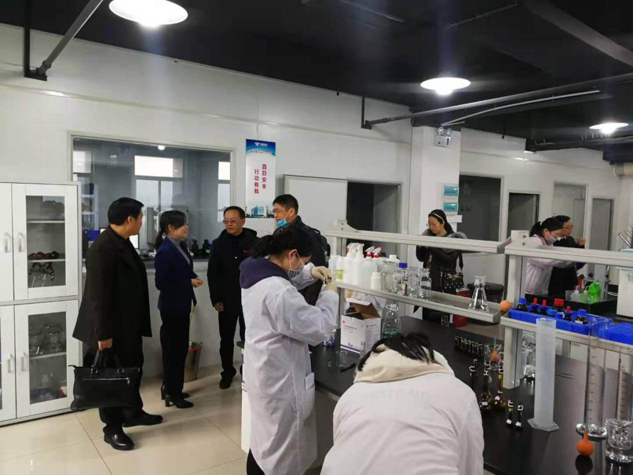 图为 太阳集团122cc领导老师参观华腾制药研发实验室