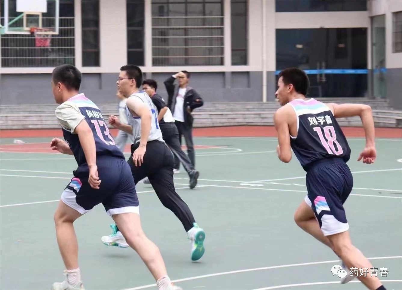 随着哨声响起,大家进入比赛节奏,飘逸的跳投、灵活的步伐、挥洒的汗水、灵动的运球,无不体现着同学们的青春活力、热情似火。在球场上,身体的碰撞是青春的音符,运球的声音是青春的乐章,球员们积极进取团结协作,赛出了朝气,赛出了风采。