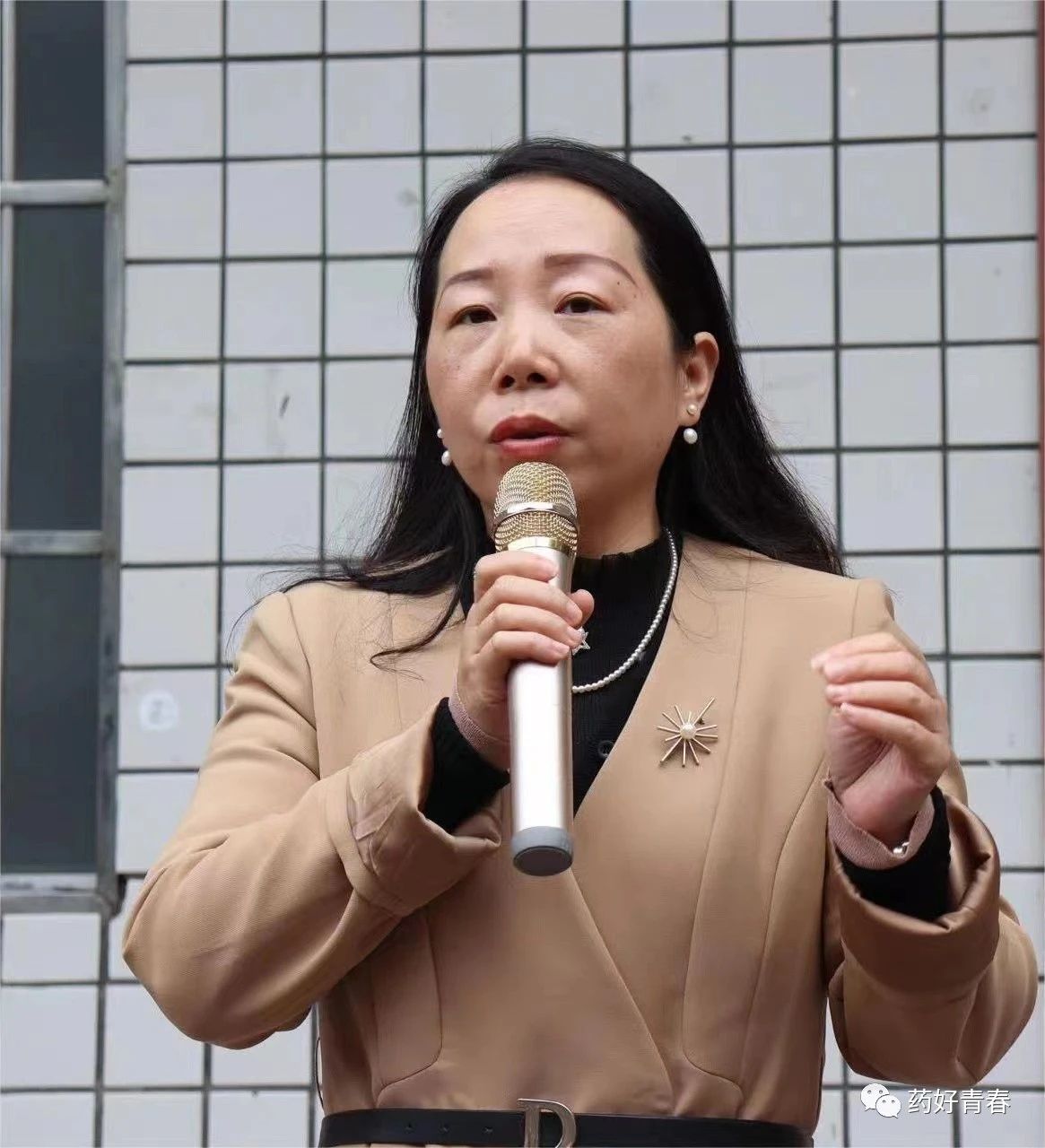 图为 李芳讲话