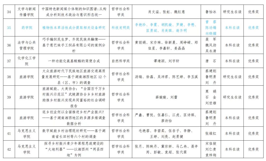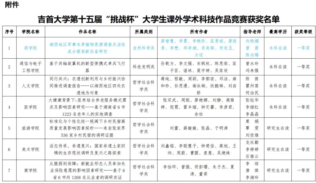 近日公司发布表彰文件,表彰在太阳集团122cc第十五届”挑战杯“老员工课外学术科技作品竞赛中获奖的单位和团队,公司师生荣获一等奖1项,优秀奖1项。其中《湘西地区军事本草植物资源调查及活性成分提取新设备研究》(廖智慧、李震、李艳珍、匡勇斌、廖丽秀、李懋、邱李湘、肖美琪、何先玉、方迢;指导老师向晓媚、曾蓉、陈功锡)荣获一等奖;植物性本草活性成分提取相关设备研究(李艳珍、李震、胡凯璇、罗婕、李懋、匡勇斌、肖美琪、谢齐明;指导老师曾蓉、陈功锡、向晓媚)荣获优秀奖,其中《湘西地区军事本草植物资源调查及活性成分提取新设备研究》推荐进入省赛。