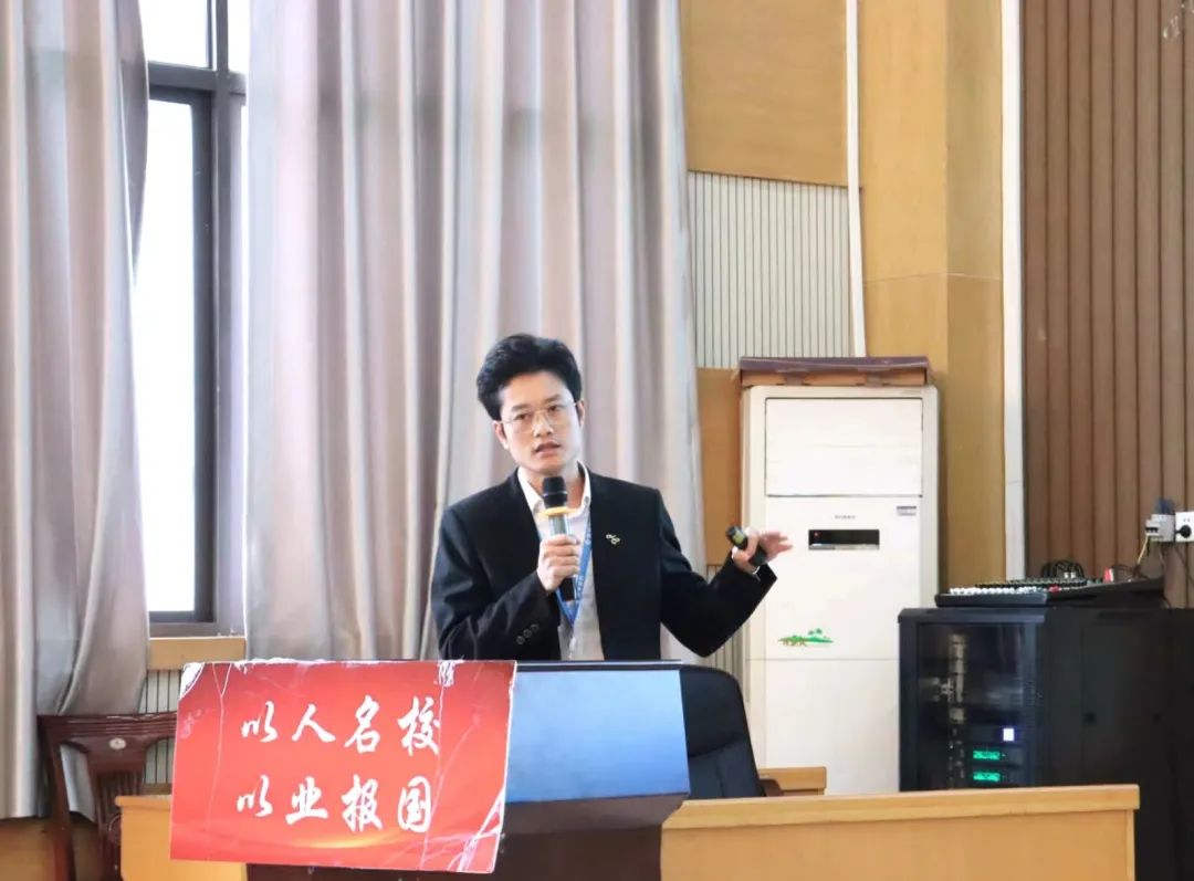 郭鹏程表示再次回到母校心情十分激动忐忑,他深深地被现场的氛围感染,随后他向学弟学妹们讲述了自己的毕业经历和职业生涯心路历程并提出两点希望,首先,希望他们积极关注企业的发展与规划,在入职前判断是否与自己的工作目标符合;其次,希望自己的经历能够在职业规划方面给予他们更多的启示。