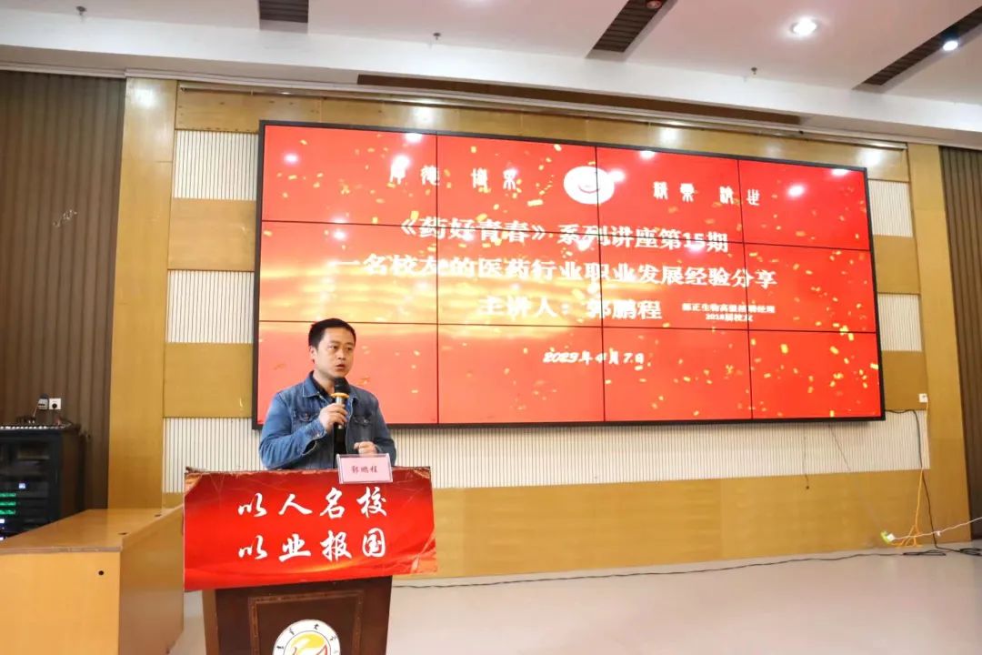 4月7日上午,《药好青春》系列讲座第15期在大田湾校区2609多功能报告厅举行。公司邀请都正生物高级招聘经理、2018届员工郭鹏程做《一名员工的医药行业职业发展经验分享》主题讲座。都正生物和慧泽医药分别进行2024届实习生和2023届毕业生就业招聘宣讲。讲座由太阳集团122cc学工办主任彭俊主持。