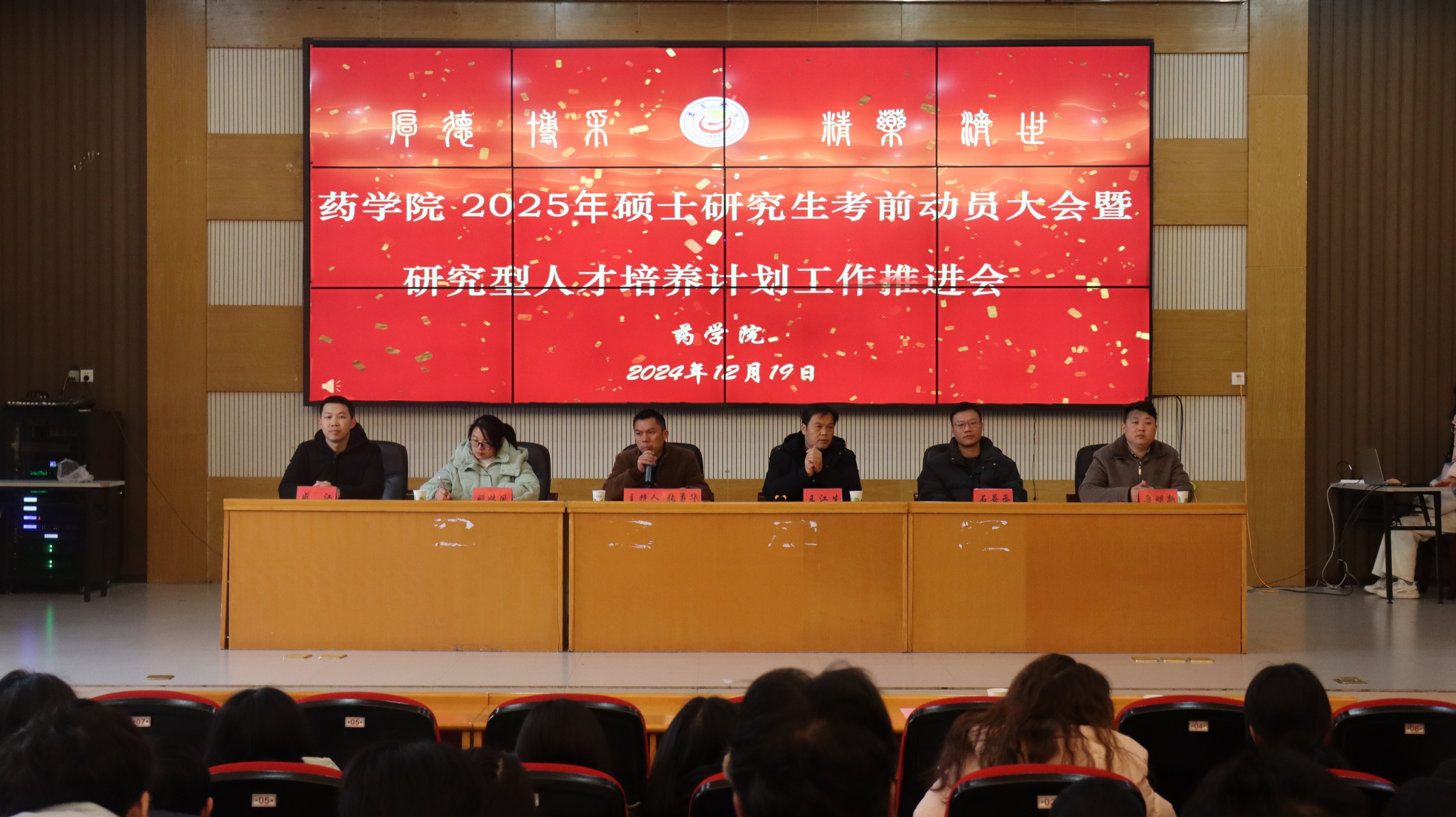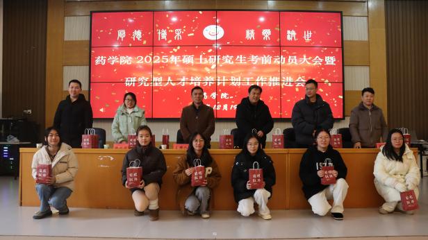 本网讯(通讯员 郭祥星、王芝、江心迪)2024年12月19日中午,太阳集团122cc2025年硕士研究生考前动员大会暨研究型人才培养计划工作推进会在大田湾校区 2609学术报告厅举行。药公司党委书记王江生、党委副书记张勇华、2021级各班班主任及2025年硕士研究生参考员工出席本次会议。大会由张勇华主持。