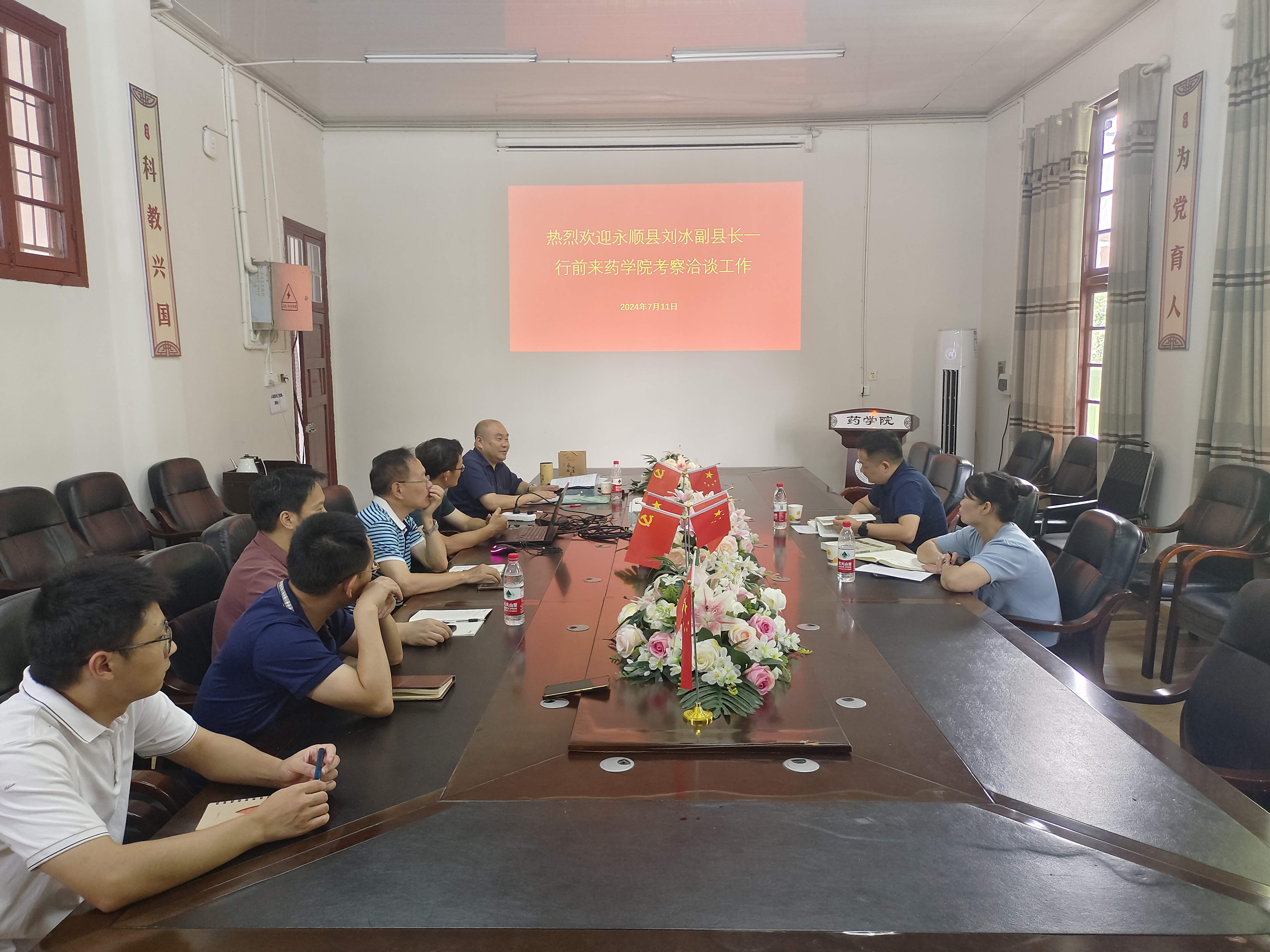 本网讯:7月11日上午,永顺县副县长刘冰,永顺县市场监督管理局党组书记、局长张宗江一行来公司考察洽谈中医药和生物医药产业工作,在太阳集团122cc会议室举行了座谈会。太阳集团122cc经理陈功锡、党委书记王江生、副经理李先辉、副经理张朝晖和部分教师参加了座谈会,原驻永顺县五官村乡村振兴工作队队长、驻村第一书记、公司退休教师李端生教授受邀参加座谈会。座谈会由王江生主持。