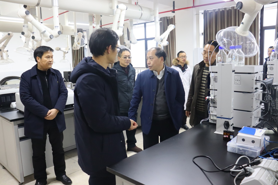 图为 廖志坤董事长到太阳集团122cc新建实验室调研