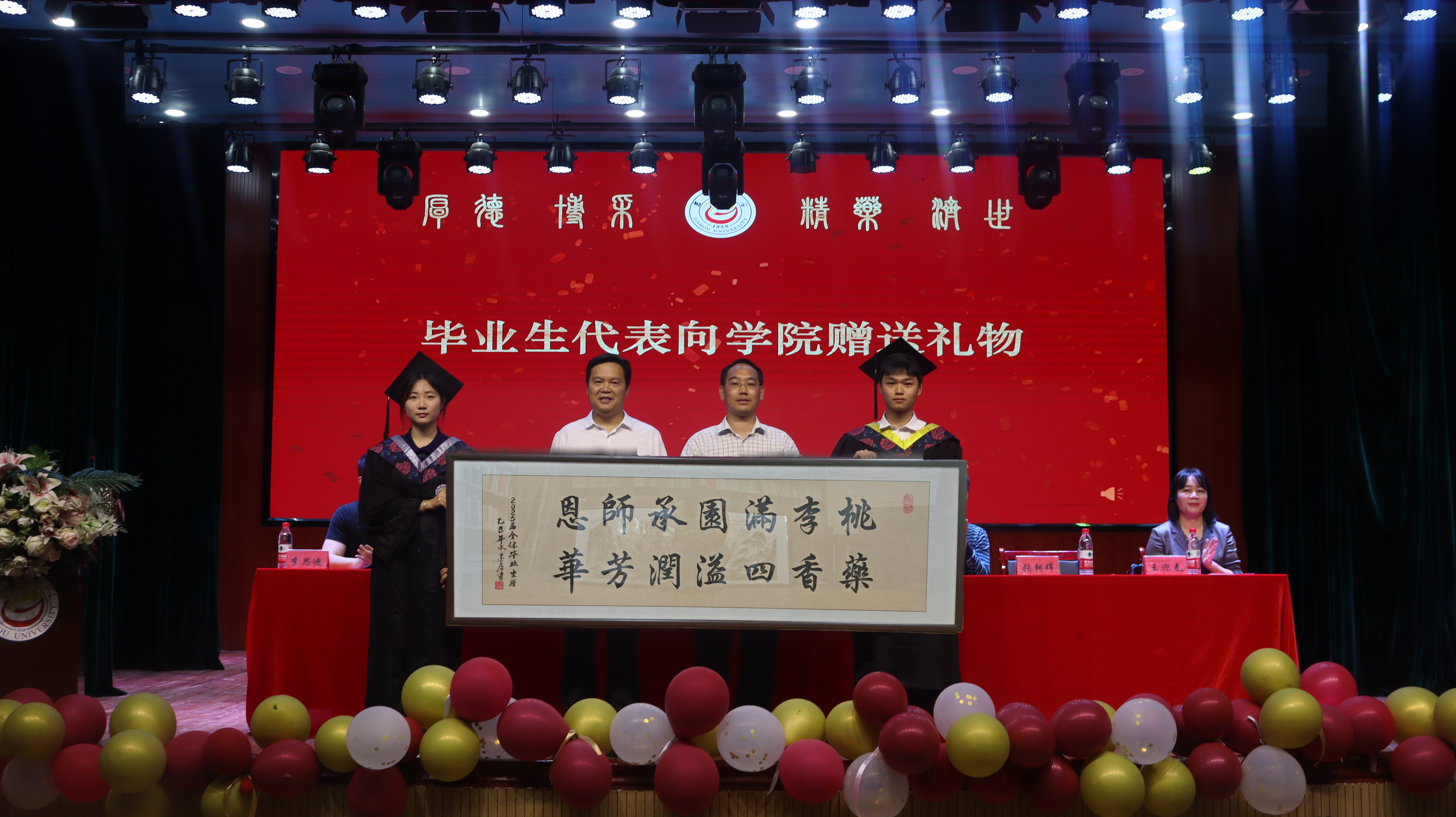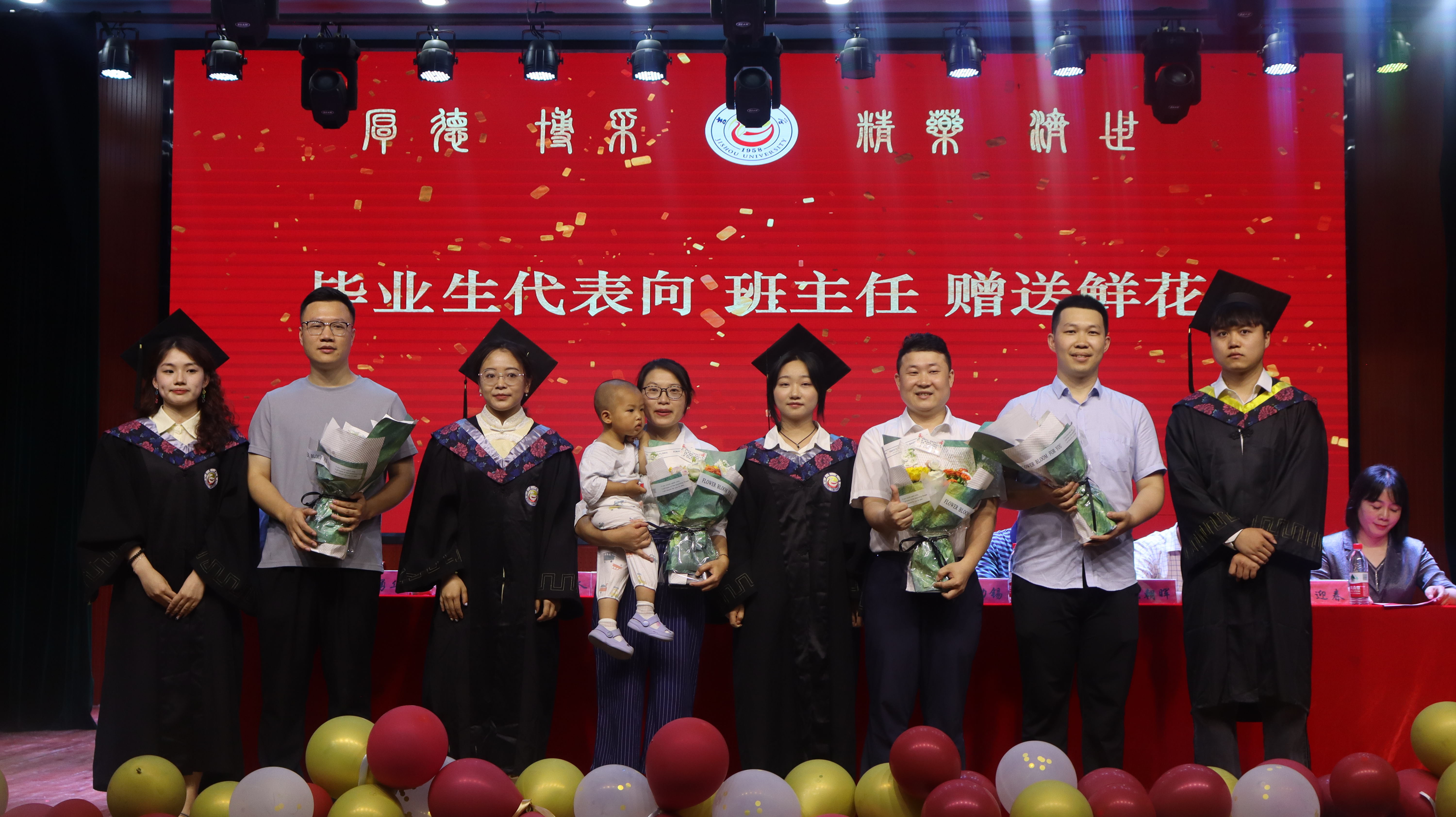 随后,毕业生代表缓步登台,代表全体毕业生向公司郑重献上精心准备的礼物。这份礼物承载着学子们对公司培养的深厚感激与依依眷恋,象征着毕业生们对公司未来发展的美好祝愿。仪式的温情延续,毕业生代表们手捧芬芳的鲜花,满怀敬意地走向陪伴他们成长的班主任老师。鲜花献上,一个深情的拥抱和鞠躬,道不尽对恩师谆谆教诲和无私奉献的深深谢意,温馨感人的场面将现场气氛推向高潮。
