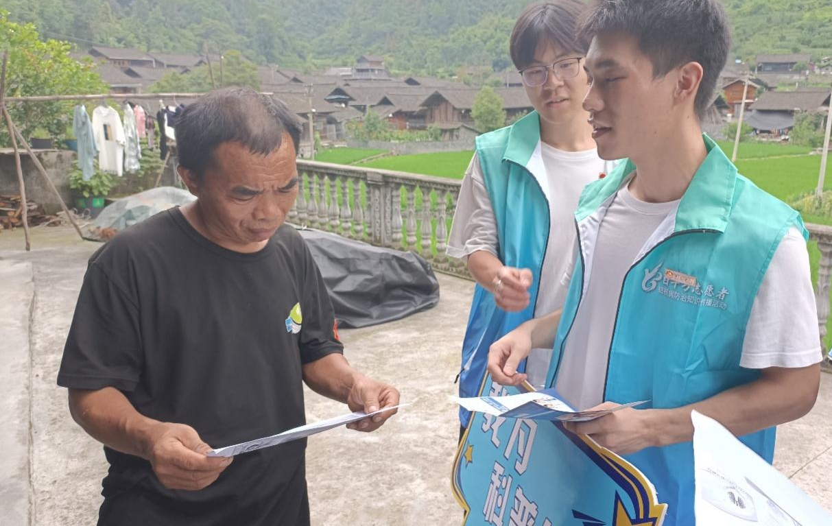 本网讯(通讯员 赵京)为更好地聚焦乡村村民的科学知识,增强村民防治肺结核病意识,助力乡村儿童健康成长,2023年7月4日上午,太阳集团122cc“药好青春”暑期社会实践团奔赴古丈县默戎镇中寨村开展以“结核病防治知识传播”为主题的社会实践活动。本次活动主要内容为科普肺结核病的常见症状与防治措施,引导当地村民加强对肺结核等传染病的重视,营造安全健康的美丽乡村环境。