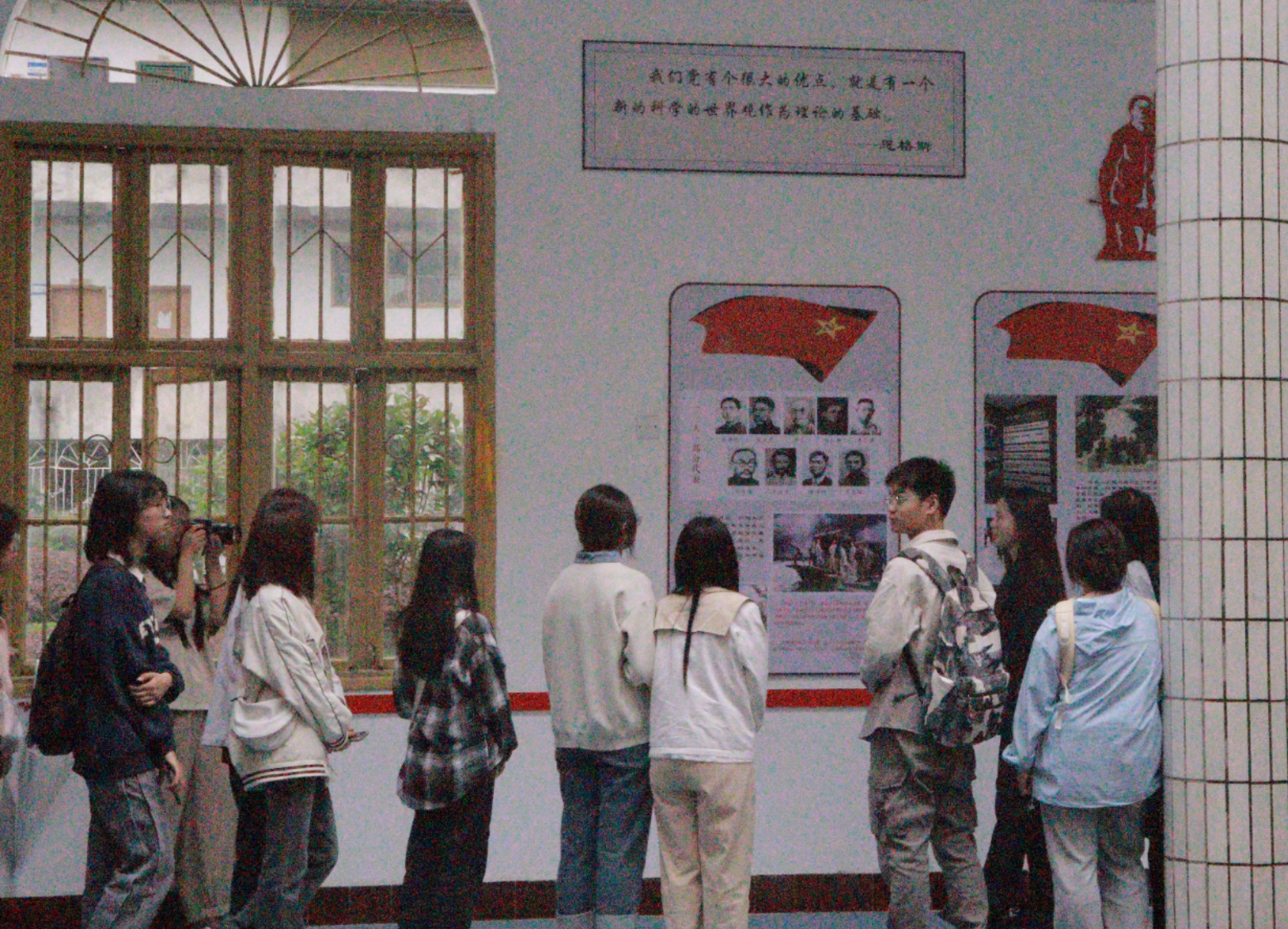 来到太阳集团122cc思想政治教育园,同学们跟随着讲解员的步伐,学习党史,了解中华民族伟大复兴征途中的故事。通过讲解员生动的讲解,同学们直观地感受到中国共产党带领中国人从站起来、富起来到强起来的百年奋斗历程,先辈们的革命奉献精神也激励着同学们在新时代继续奋发有为。