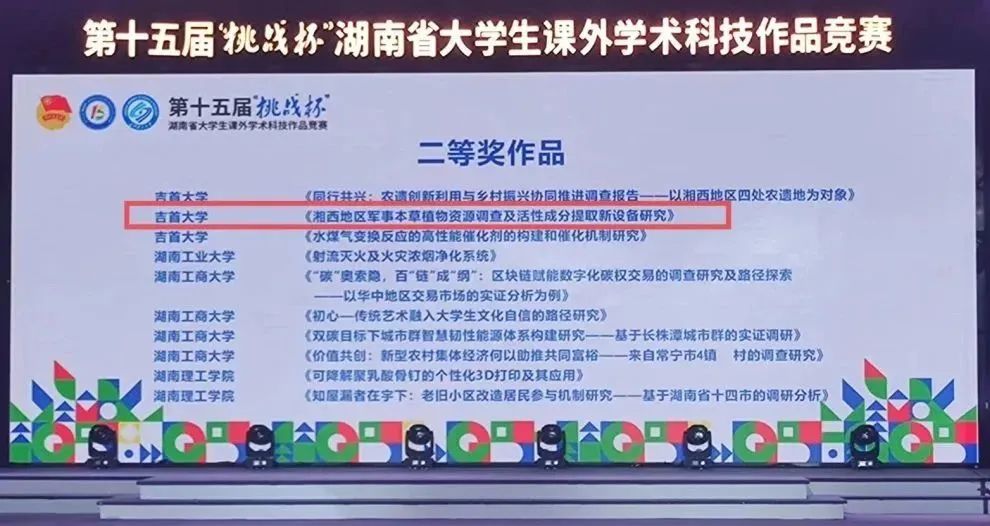 5月22日,湖南省第十五届“挑战杯”学术科技作品竞赛终审发布会落下帷幕。公司员工作品《湘西地区军事本草植物资源调查及活性成分提取新设备研究》荣获二等奖。