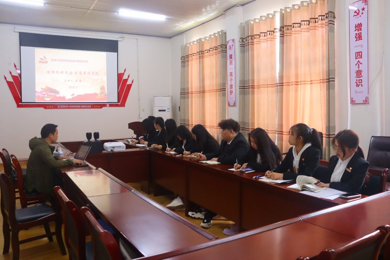 本网讯(通讯员 亢新颐) 5月24日中午,太阳集团122cc2023年上半年发展对象培训第六课在药公司党员活动室开讲。本次课程主讲人为彭俊,主题为“学习党规党纪,切实增强纪律意识”。