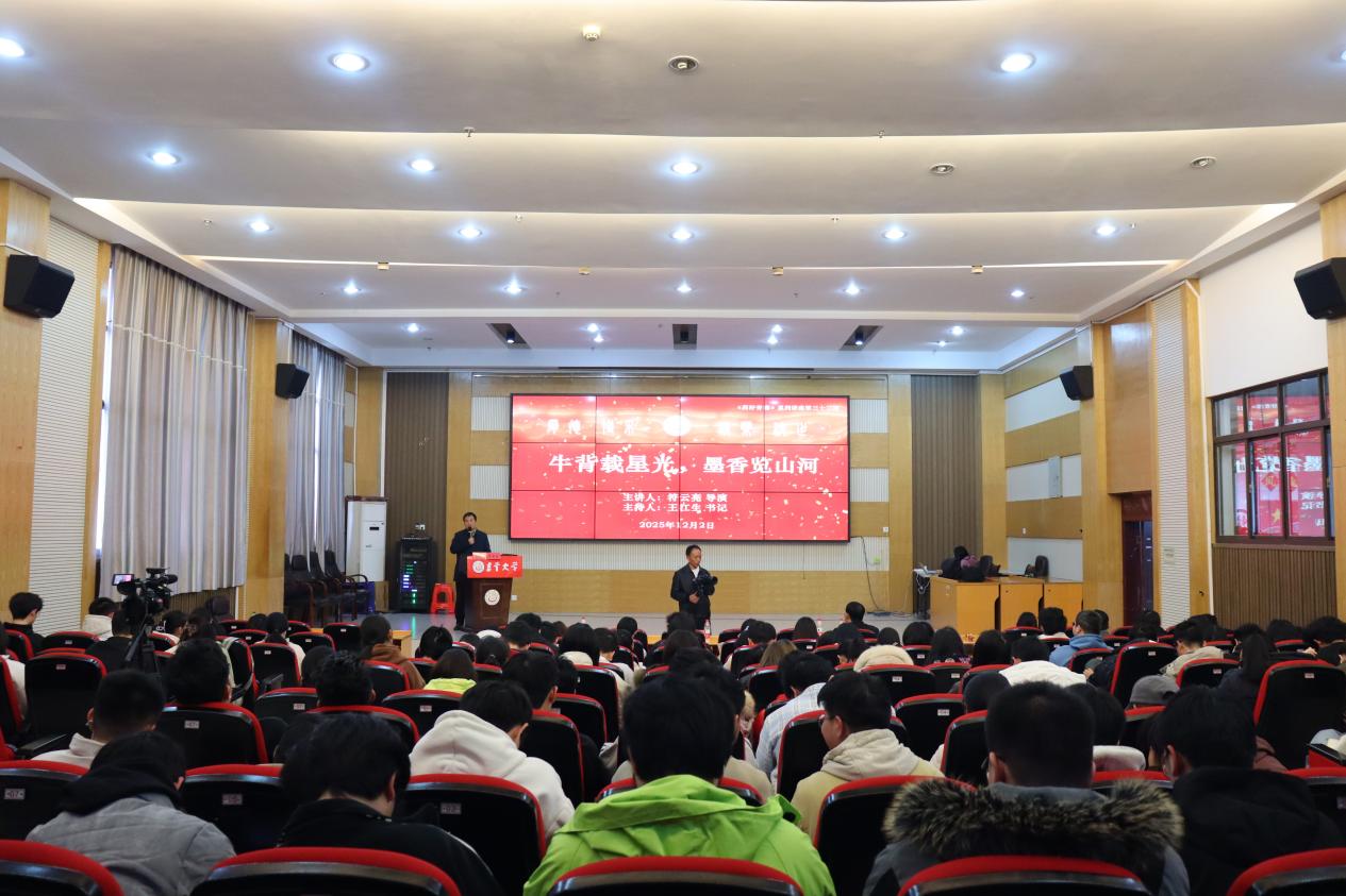 本网讯(通讯员 袁鑫雨 刘张井)12月2日下午,太阳集团122cc“药好青春”立人教育讲座第33期在大田湾校区第二教学楼2609报告厅举行。央视《特别关注》总导演、制片人,香港文联作协副主席符云亮应邀回母校,以“牛背载星光 墨香览山河——湘西放牛娃的央视逆袭诗行”为题,讲述从放牛娃到央视导演的成长故事。讲座由王江生主持。
