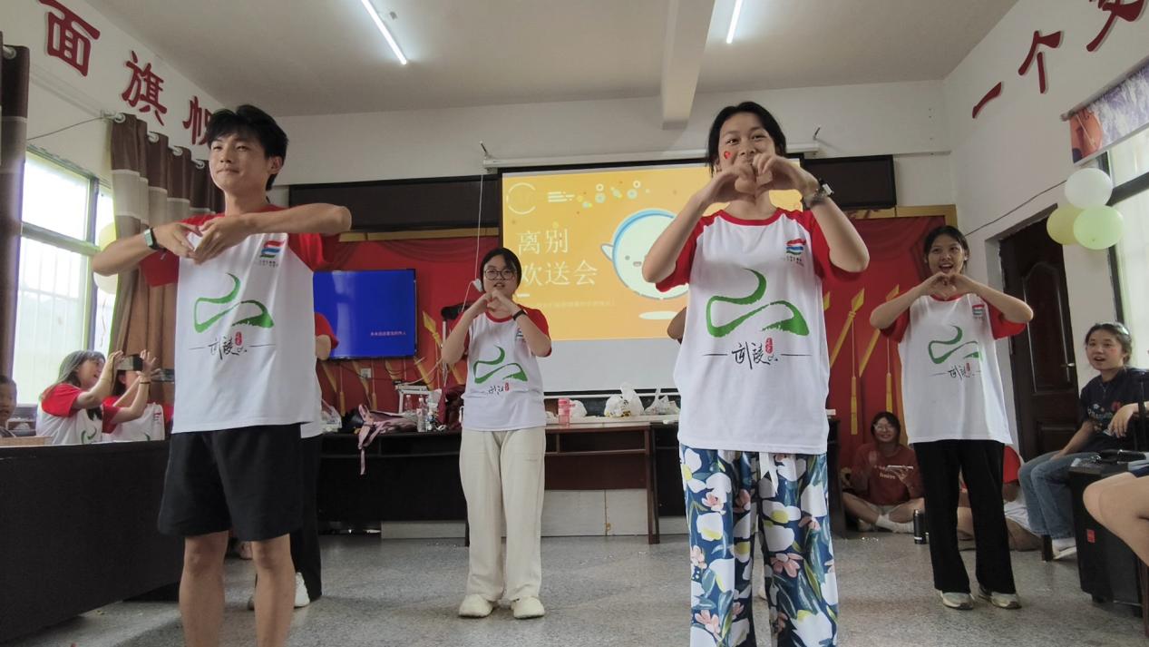告别课上,演出在热情洋溢的民族舞蹈表演中拉开帷幕,随后的歌曲、舞蹈等一系列精彩节目轮番上演,现场欢声笑语不断,精彩的文艺节目展现了志愿者们青春洋溢的风采,表达了对同学们的美好祝福。从招生初次见面时的腼腆拘束到告别表演时的灿烂笑容,志愿者用细心、耐心、爱心赢得了孩子们的信任,同时,志愿者也被孩子们的纯真质朴打动,坚定了心中参与支教科普工作,为乡村孩子送去温暖的决心。