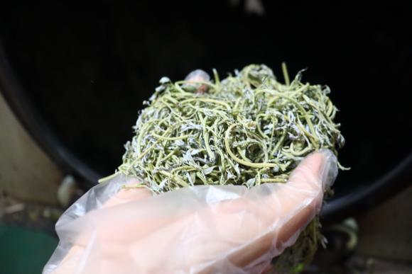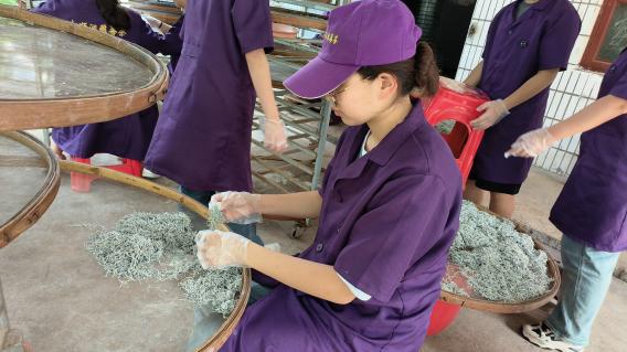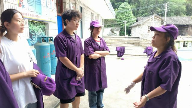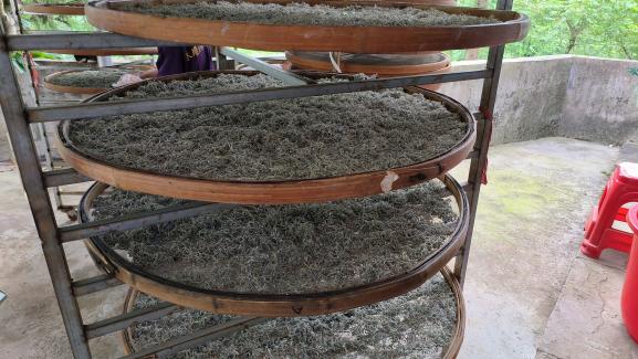 “新鲜采摘下来的莓茶叶需要及时杀青,锁住茶里的有益成分。”向阿姨向我们解释到。进入工厂,工人们正在准备将刚采摘下来的茶叶进行杀青操作,从而保证茶叶的新鲜,才一段时间,大家就汗流浃背,“我们经常一待就是大半天,有时茶量大的时候还会待到大半夜,这二十多年来都是这样,都习惯了。”这轻松的语气恰恰最能体现茶农的不易。随后进行的是揉捻、发酵操作,发酵使得莓茶中的黄酮化合物得以更好地析出和结晶,从而使茶叶呈现出独特的色泽和风味;发酵后需要将茶叶阴干;进行薄层铺平晾晒,让莓茶叶充分接受阳光的照射。随后,向绪珍指出制茶需要注意的事项,并向成员们分享了她制茶多年的经验。