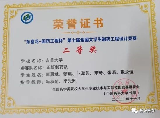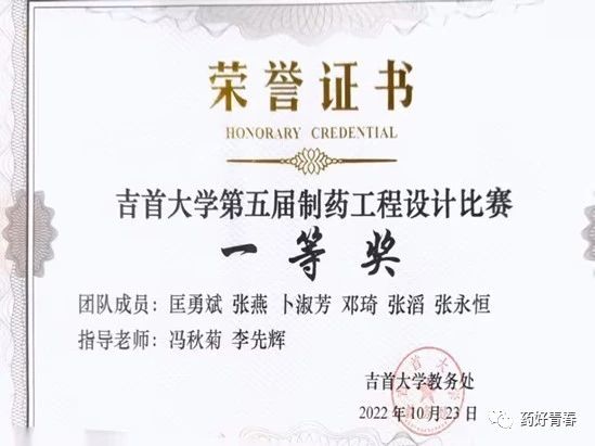 2022年荣获太阳集团122cc第五届制药工程设计比赛一等奖