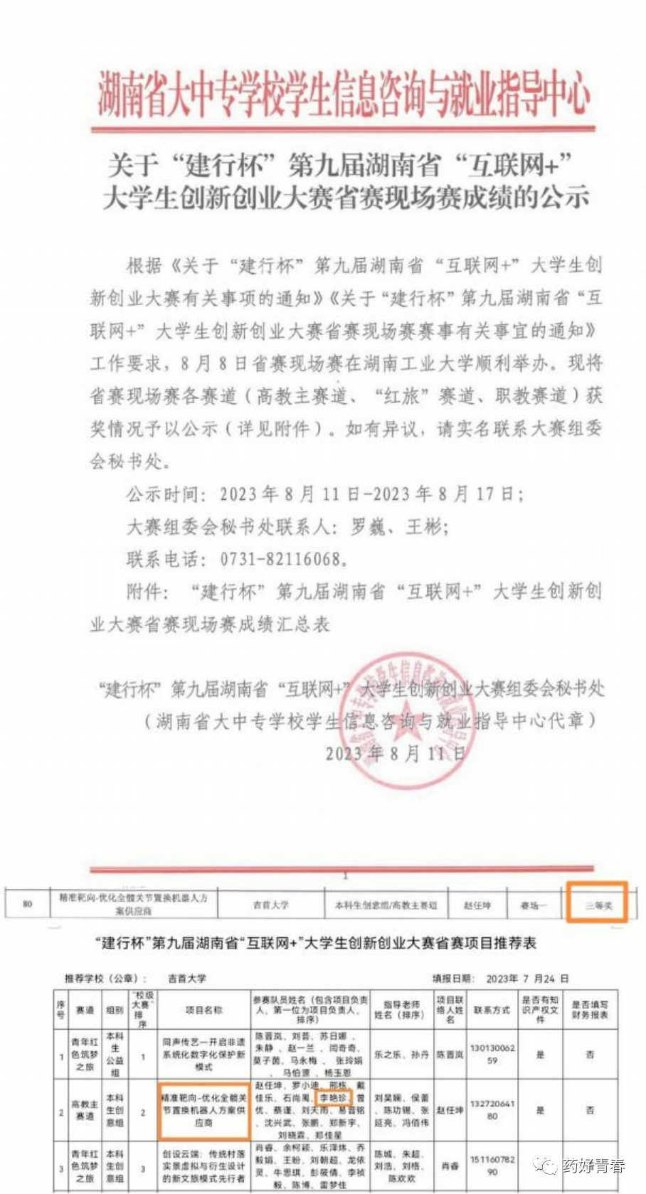 “建行杯”第九届湖南省“互联网+”老员工创新创业大赛高教主赛道