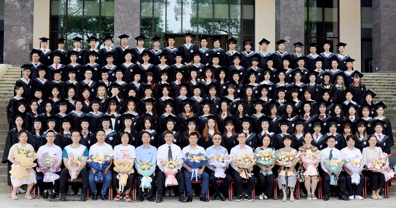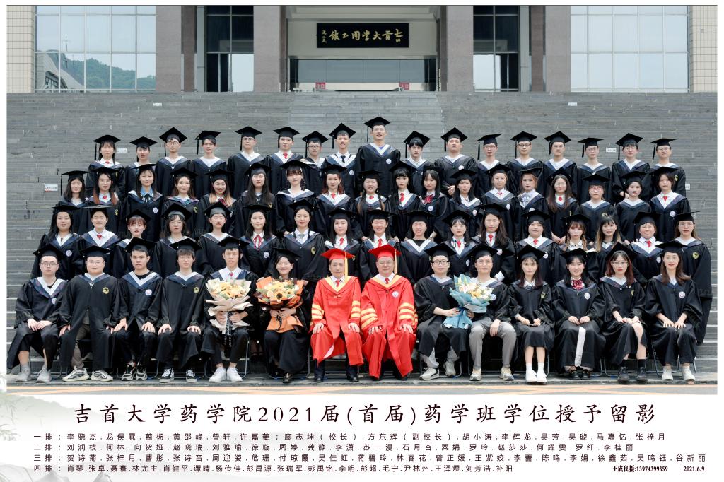 2021届药学班员工与董事长廖志坤教授、副董事长方东辉教授合影