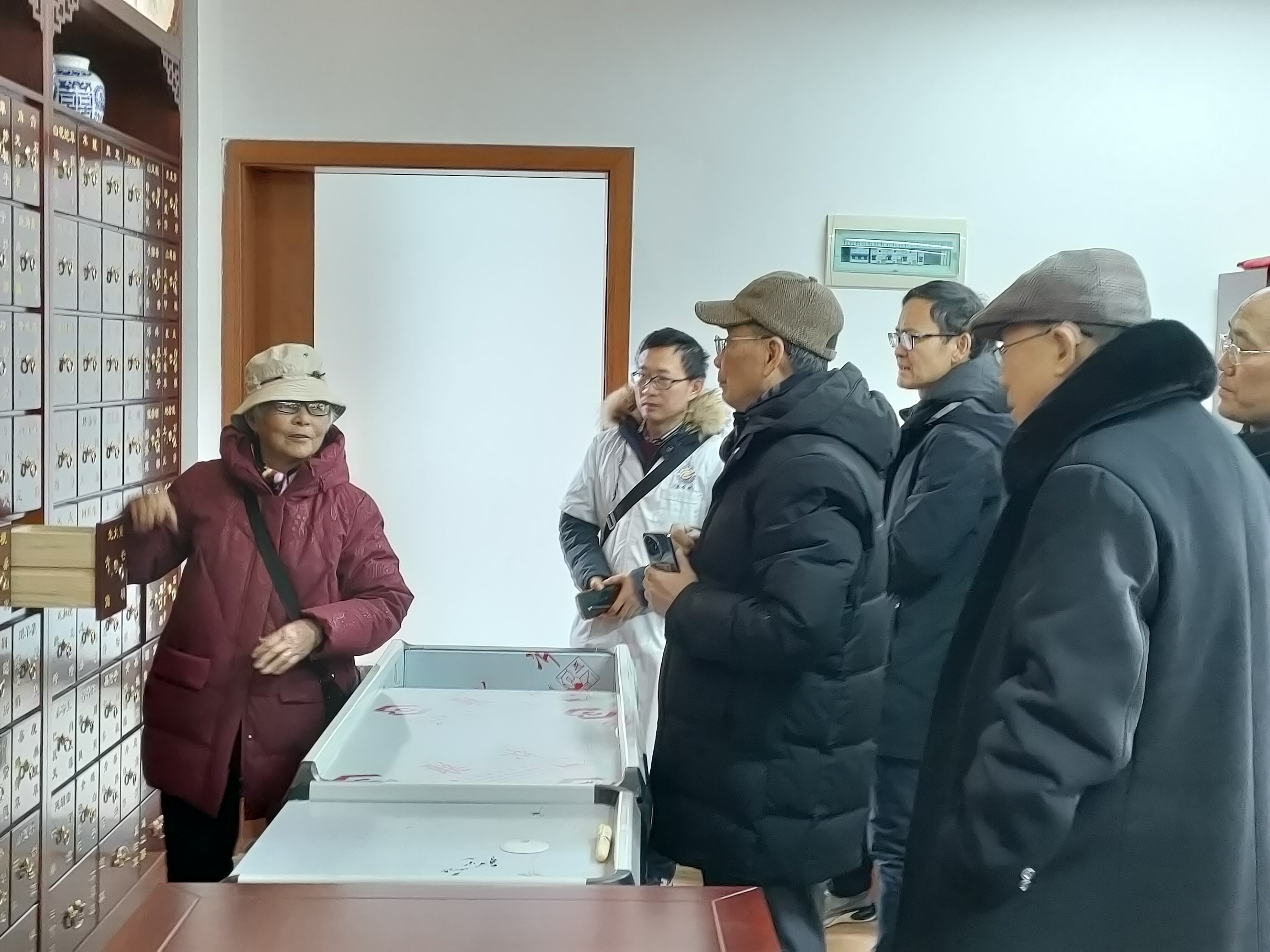 年近八旬的李老师在大家的陪同下参观了中药专业实验室。走进崭新的中药专业实验室,李老师仿佛见到了久违的老友,激动的心情溢于言表,她拉开一个个中药柜,对着柜门上的中药名称进行功能和存放方法讲解,如数家珍,其扎实的专业功底让在场的人敬佩不已。她走进一间间实验室,非常专业地进行现场教学和指导,对如何加强实验室建设提出了非常宝贵的建议。她来到中药炮制室,非常深情地说:“中药专业一定要处理好传承与创新的关系,中药专业传统技艺是员工的基本功,无论什么时代都要熟练掌握”。