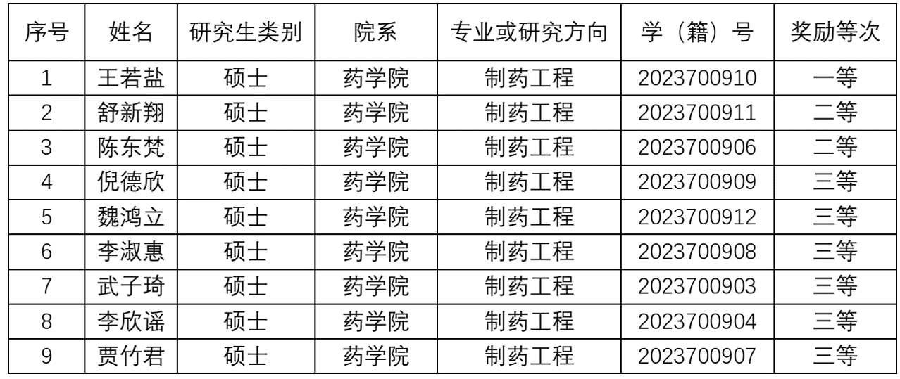 太阳集团122cc2023级研究生2023-2024学年度学业奖学金名单