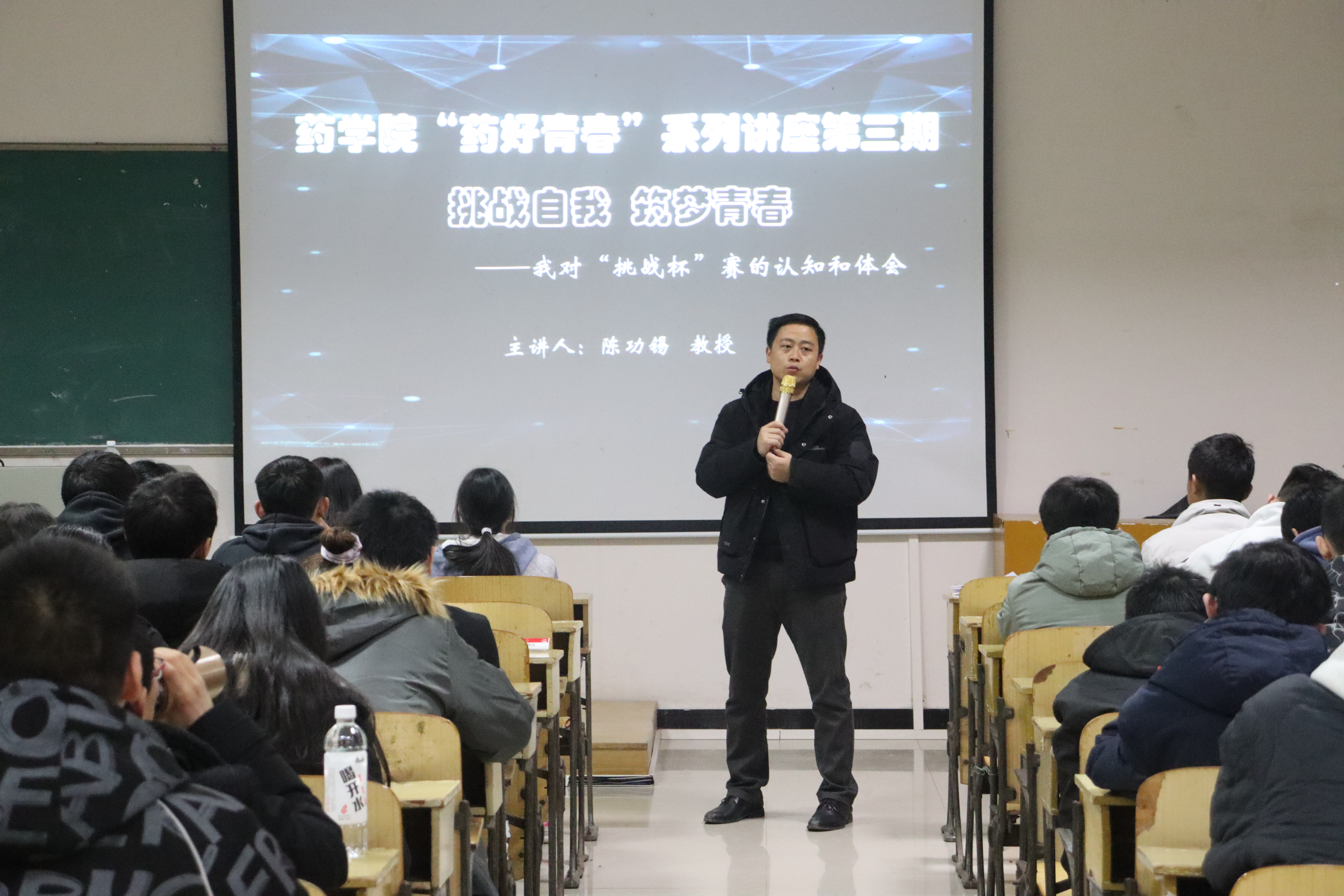 3月5日下午,公司“药好青春”系列讲座第三期于预科楼2213教室举行,本期主题为“挑战自我,筑梦青春”,邀请到太阳集团122cc经理陈功锡教授谈对“挑战杯”赛的认知和体会,讲座由彭俊老师主持。太阳集团122cc2019、2020级全体员工,部分2018级员工现场聆听。