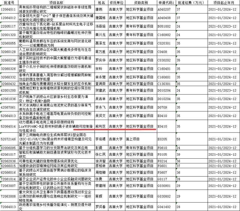 本网讯:(院办供稿) 9月18日,国家自然科学基金委公布了2020年国家自然科学基金项目立项评审结果,公司熊利芝博士、教授申报的国家自然科学基金项目《动力锂离子电池用三维多级维纳结构LixVOP04@C-N正极材料的离子液体辅助可控制备与性能评价》获得立项,资助经费35万元。熊老师治学严谨,潜心科研与教书育人,已主持国家自然科学基金3项,发表学术论文50余篇。