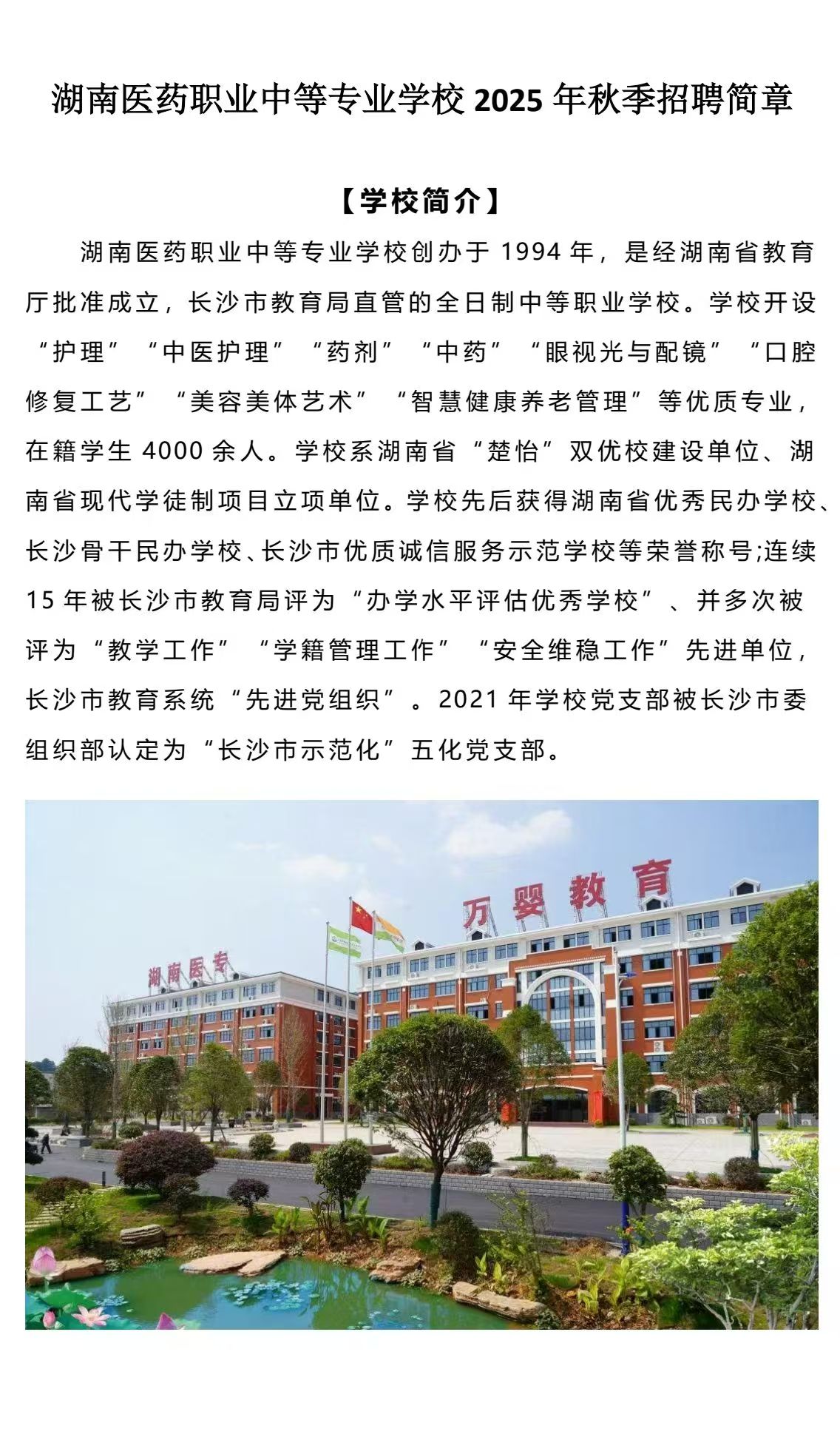 湖南医药职业中等专业公司2025年秋季招聘简章