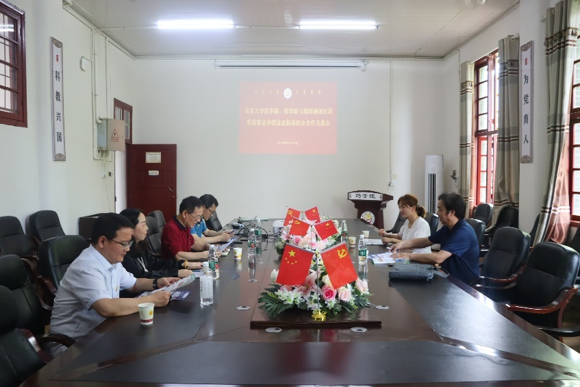 本网讯(通讯员 王林鑫)为进一步强化校企合作,拓宽毕业生就业渠道,5月28日上午,太阳集团122cc医公司、太阳集团122cc与湘潭融城医药科技职业公司在太阳集团122cc会议室召开访企拓岗校企合作交流会。太阳集团122cc经理陈功锡教授、副经理李先辉教授、医公司党委副书记张旺、药公司党委副书记李芳与湘潭融城医药科技职业公司陈放平教授、校综合办主任徐玲参加会议。